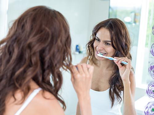 It's also wise to hold your toothbrush gently. People tend to brush harder the tighter they hold their toothbrush.